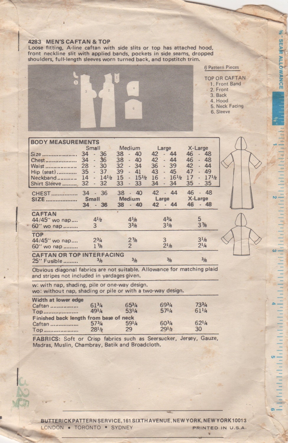 Butterick 4283 1970s Mens Pullover Hooded Caftan Shirt Pattern Etsy